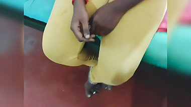 "Tamil wife stimulates her husband's penis with her feet at home"