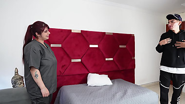 "Big Ass Stepmom Ends Up Fucking Her Stepson On The Couch While Visiting"