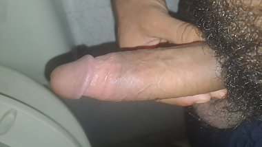 "Got a sudden urge to cum when I went to pee and got my dad knocking at the door"