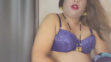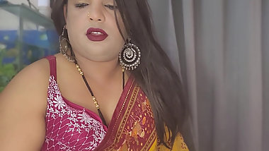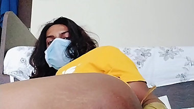 "Indian shemale sissy crossdressers fucking dildo in home and handjob"