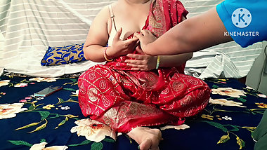 "Bhartiya desi Lal sadi wali bhabhi ne apne padosi se chudai karvai"