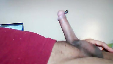 "Sissy gauri cums in red panty and dress"