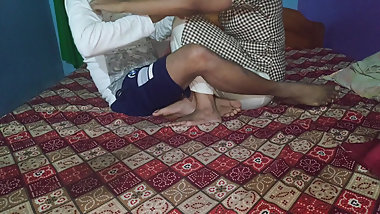 "18 year old School girl & Step daddy do Mutual masterbation on bed , do side way Fuck quicky"