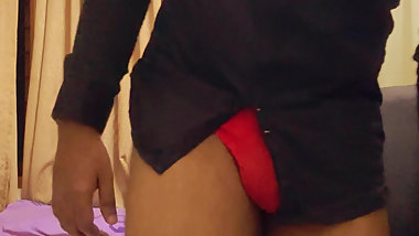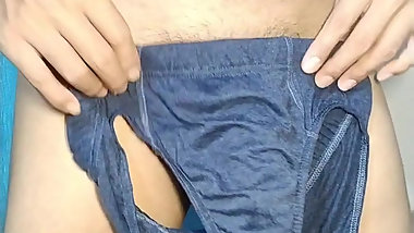"Trying on New Underwear Brief Panty Big Cock Underwear"